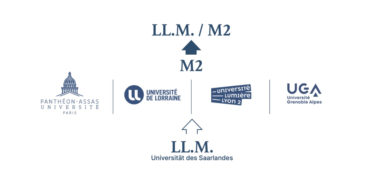 Les étudiants passent leur première année d'études à Sarrebruck, tandis que la deuxième année est effectuée dans l'une des universités partenaires françaises. Après avoir validé ces deux années, les étudiants se voient décerner respectivement le diplôme de LL.M. de l'Université de la Sarre et le Master 2 de l'université partenaire française.