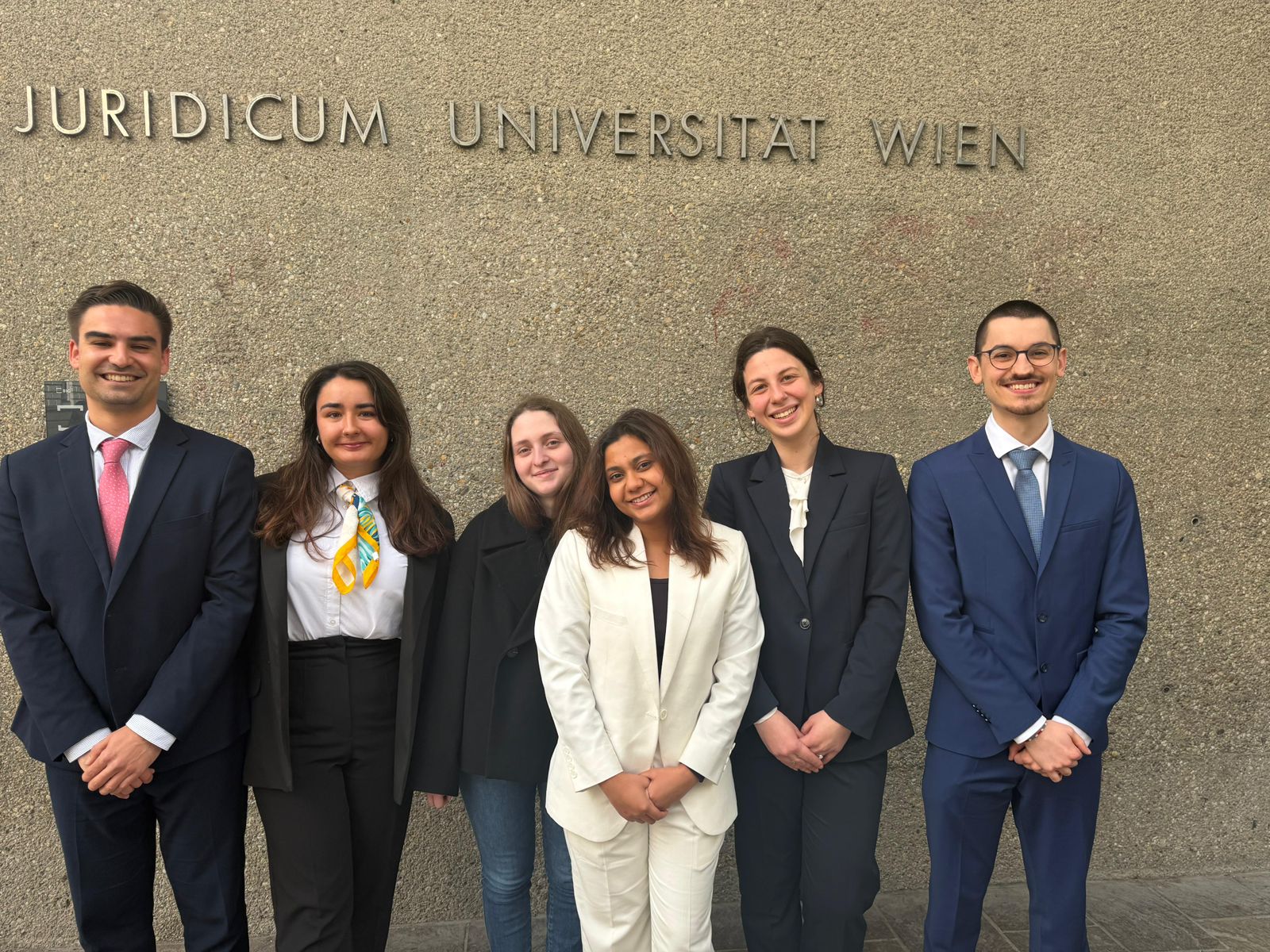 From the release of the case in October 2025 until the conclusion of the competition in April 2026 in Vienna, the team from Saarland University worked with full dedication on their participation in the 33rd Vis Moot. The team consisted of Salome Gomarteli, Mariam Putkaradze, Andrés Fernández Kessler, Victoria Travieso Hernández, and Javeria Hafeez. Supervision was once again provided by Prof. em. Dr. Dr. h.c. mult Helmut Rüßmann, supported by coaches Mika Schieffer, Elinam de Souza, LL.M., and Eva Wingler.
