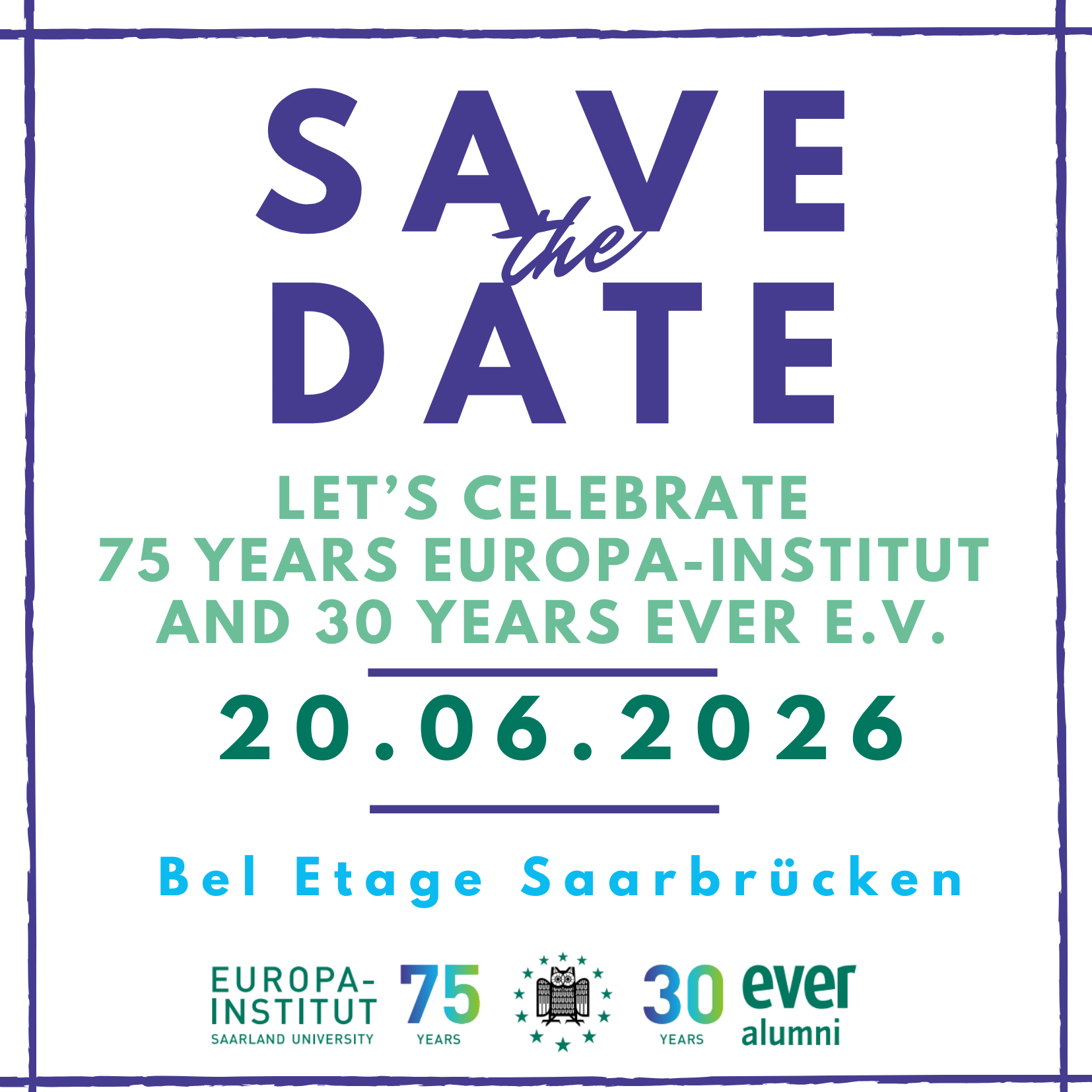 🎉 Save the Date! Wir feiern unser Jubiläum! 75 Jahre Europa-Institut & 30 Jahre EVER e.V.